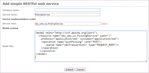 c. Copy the content from WMS_Integration\Integrator\model_files\Picking.xml to Model content.