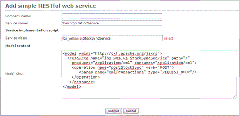 c. Copy the content from WMS_Integration\Integrator\model_files\StockSync.xml to Model content.
