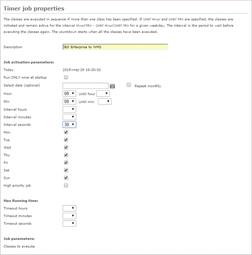 - Enter timer name IbsEnterpriseToWms.