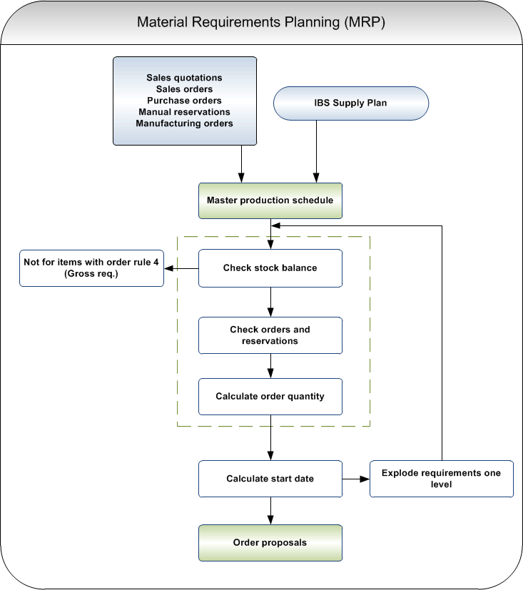 The process of working with material requirements planning includes the following steps: