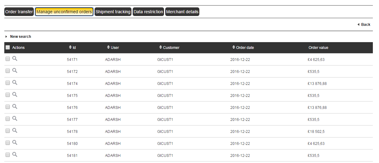 Note: Even non-displayed orders, matching the search criteria, will be transferred.