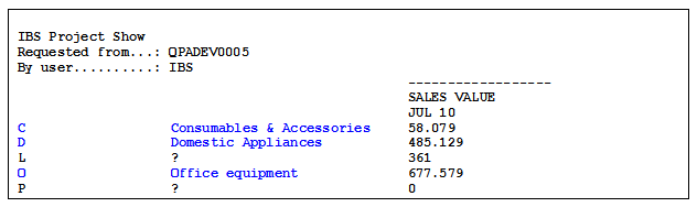 Note: The Item categories OFF and PHONES are printed, since Detail was YES.